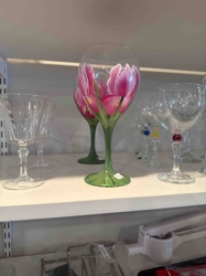 Vintage Hand-Painted Floral Footed Drinking Glasses (Set of 3)