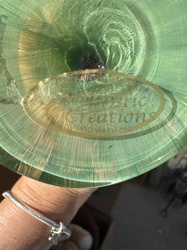 Hand-Painted Wild Rose Ceramic Plate on Green Glass Dish