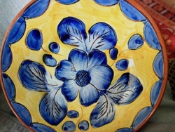 Portuguese Hand-Painted Terracotta Floral Bowl