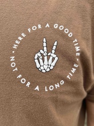 Graphic Print T-Shirt with Skeleton Hand Peace Sign
