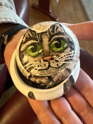 Hand-Painted Folk Art Cat Ceramic Trinket Box