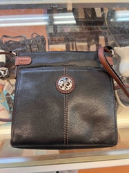 Brighton Ferrara Black and Cognac Leather Crossbody Bag