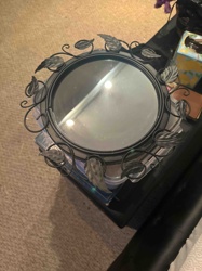 Decorative Wrought Iron Circular Mirror with Leaf Accents