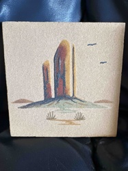 Navajo Sand Painting of The Three Sisters & Mitchell Mesa