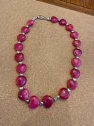 Dyed Fuchsia Agate Heart-Shaped Bead Necklace