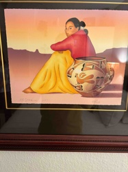 R.C. Gorman Signed and Numbered Lithograph portraying a Navajo Woman with Pottery