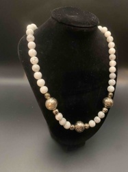 Howlite and Etched Metal Bead Strand Necklace