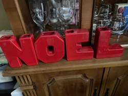 Mid-Century Ceramic NOEL Taper Candle Holder Set