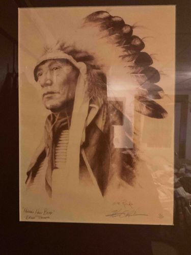 Framed Signed Portait of Hollow Horn Bear by Edward Sheriff Curtis