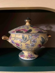 Vintage Hand-Painted Floral Pedestal Covered Bowl