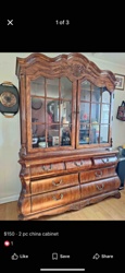 Antique Curved Glass China Cabinet (Curio Cabinet)