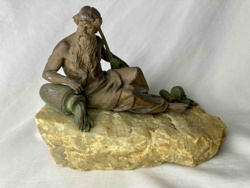 Bronze Spelter Figural Sculpture of a River God on Rock Base