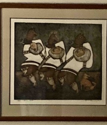 Inuit Art Stonecut or Lithograph Print of Mother Figures