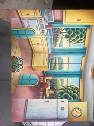 Original Stylized Kitchen Interior Painting by Andy Russell (2000)