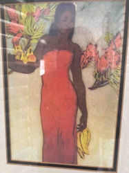 Mid-Century Tretchikoff Style South Pacific Maiden Wood Grain Print