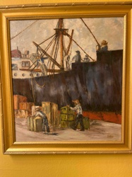 Impressionist Style Oil Painting of a Busy Dock Scene