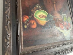 Framed Miniature Still Life Oil Painting by H. Lerand