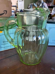 Anchor Hocking Green Uranium Glass Ribbed Water Pitcher