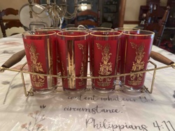 Vintage Gold Overlay Tumbler Cocktail Set with Caddy
