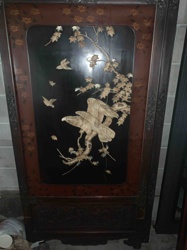 Vintage Japanese Bone and Mother-of-Pearl Inlay Lacquer Screen Panel