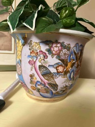 Japanese Satsuma-Style Chidori and Floral Porcelain Planter