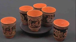 Hand-Painted Burmese Red Cinnabar Lacquerware Cylindrical Tumblers