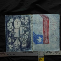 Original Blue Crayon and Graphite Spiral-Bound Sketchbook by Jean Larry