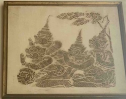 Mid-Century Thai Temple Charcoal Rubbing on Rice Paper