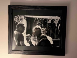 Framed Black and White Photograph of a Crowded Staircase Scene