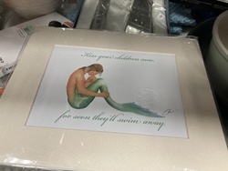 Robert Kline matted and embossed mermaid print - 'Kiss your children now, for soon they\'ll swim away.'