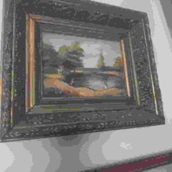 Framed Pastoral Landscape Oil Painting with Footbridge
