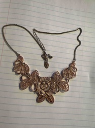 Gold-Tone Rose and Filigree Leaf Bib Necklace