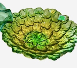 Vintage Green Art Glass Leaf Pattern Decorative Bowl