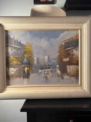 Framed Parisian Cityscape Oil Painting