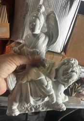 White Glazed Porcelain Figurine of Deity Riding a Foo Dog (Guardian Lion)