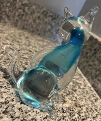 Murano Style Hand-Blown Sommerso Glass Cat Figurine