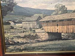 Eric Sloane Landscape Lithograph Featuring a Covered Bridge