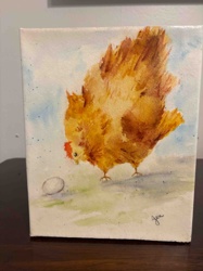 Contemporary Watercolor Chicken and Egg Study on Gallery Wrapped Canvas