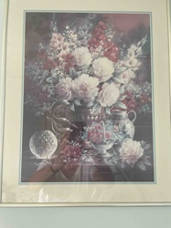Framed Still Life Print with Red Roses and Chinoiserie Vases