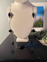 Modernist Long Station Necklace with Black Glass and Silver-Tone Beads