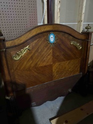 French Louis XVI Style Parquetry Headboard with Sevres-Style Porcelain Plaque