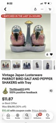 Vintage Japanese Lusterware Parrot Bird Salt and Pepper Shakers with Tray
