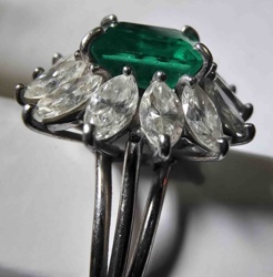Colombian Emerald and Marquise Diamond Platinum Cocktail Ring