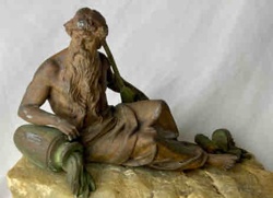 Bronze Spelter Figural Sculpture of a River God on Rock Base