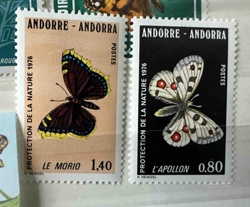 1976 Andorra (French Administration) Protection de la Nature Butterfly Stamps