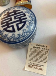 Cost Plus World Market 'Double Happiness' Blue and White Ceramic Covered Box