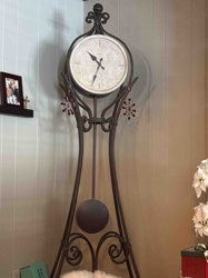 Ornate Wrought Iron Grandfather Clock with Pendulum