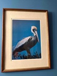 Matted and Framed Vintage Brown Pelican Color Photograph