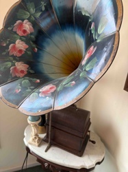 Edison Cylinder Phonograph with Floral Morning Glory Horn