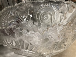 American Pattern Brilliant Cut Glass Punch Bowl with Matching Ladle and Cups